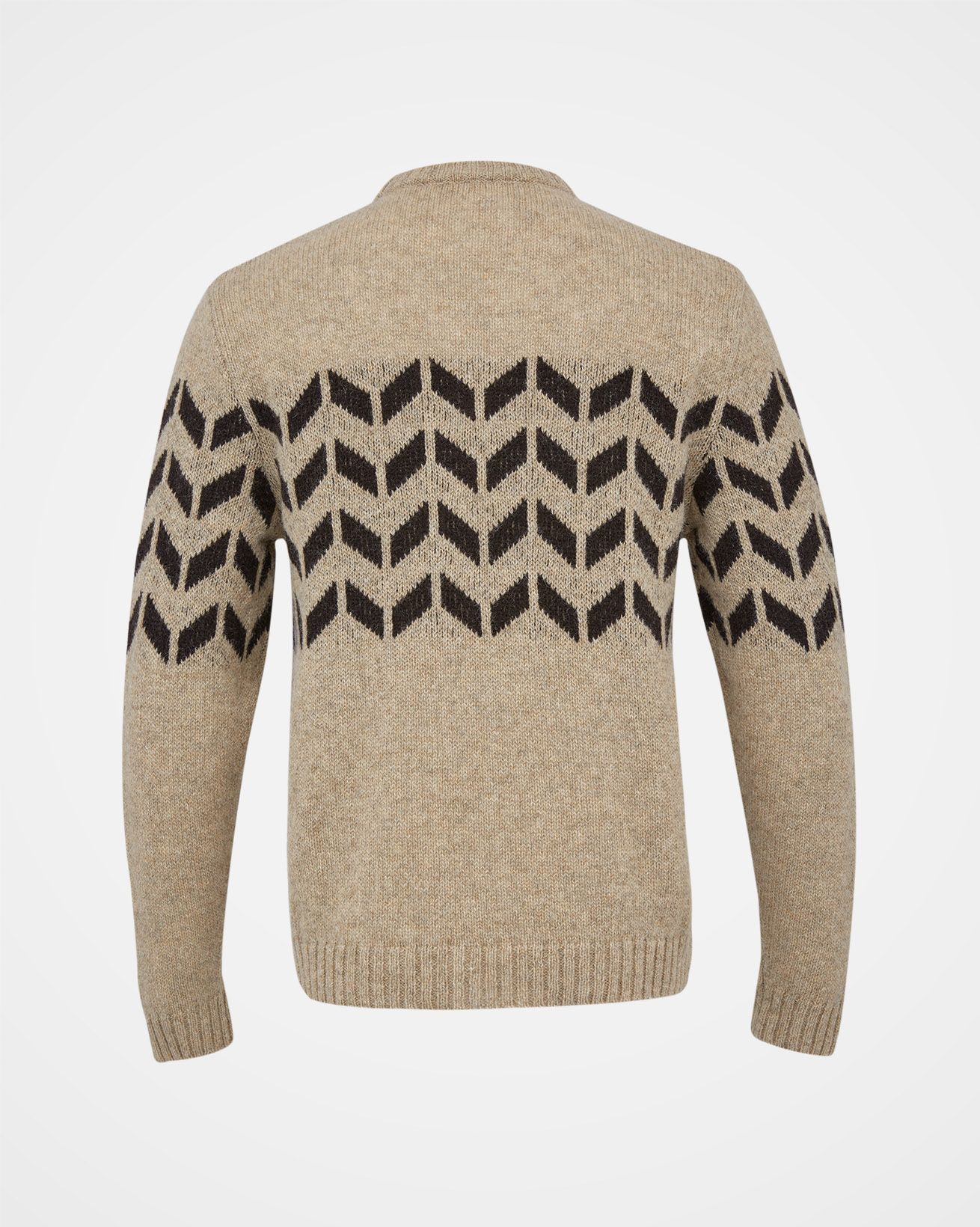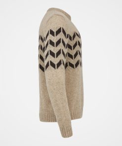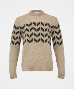 A wool jumper is a winter essential, and this classic shape featuring a chevron design running across the chest and sleeves will never go out of style. Fuss-free details such as the ribbed collar, cuff and hem, paired with a crew neck make for a timeless, casual sweater to be pulled on whenever the weather gets chilly.