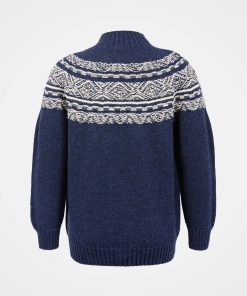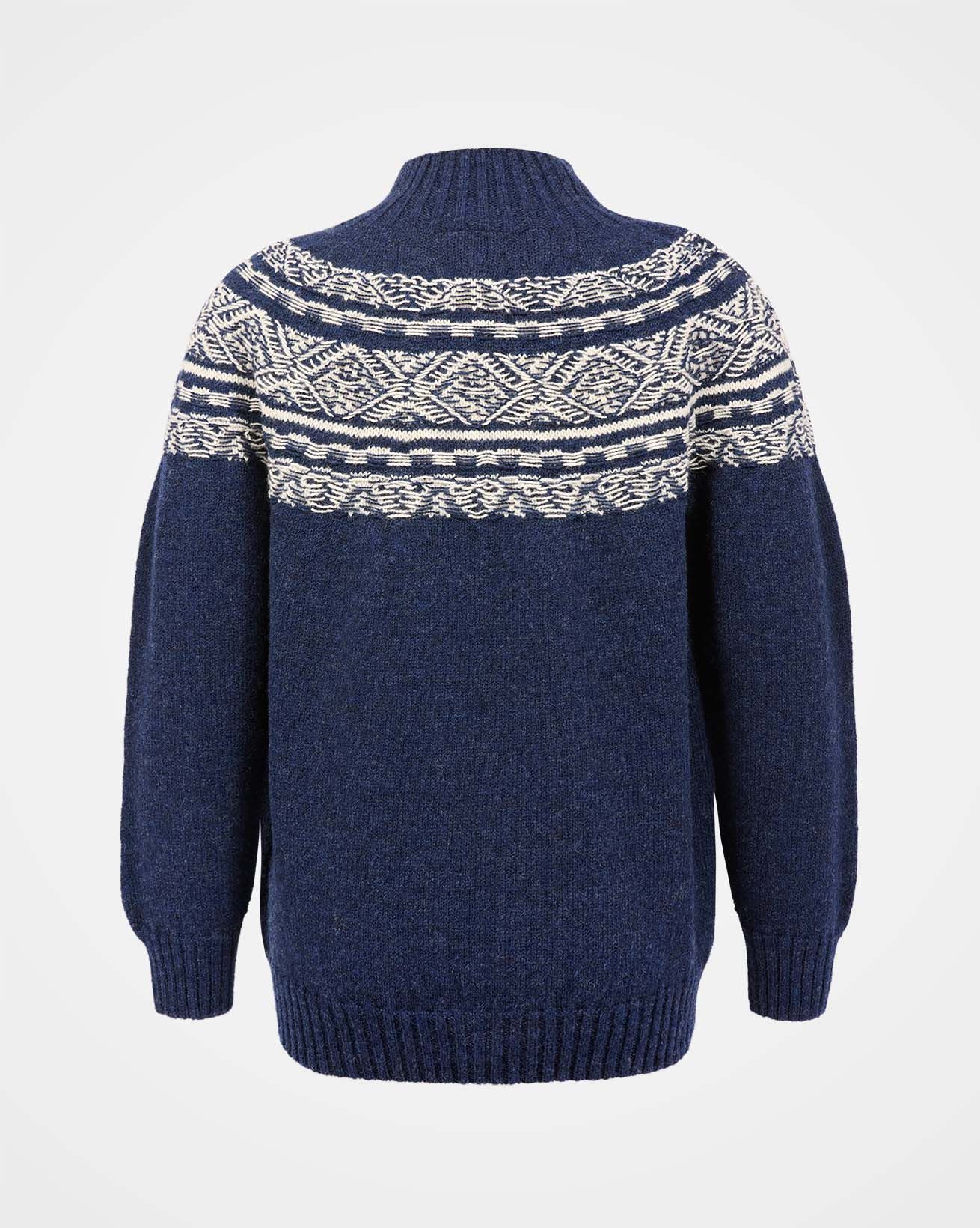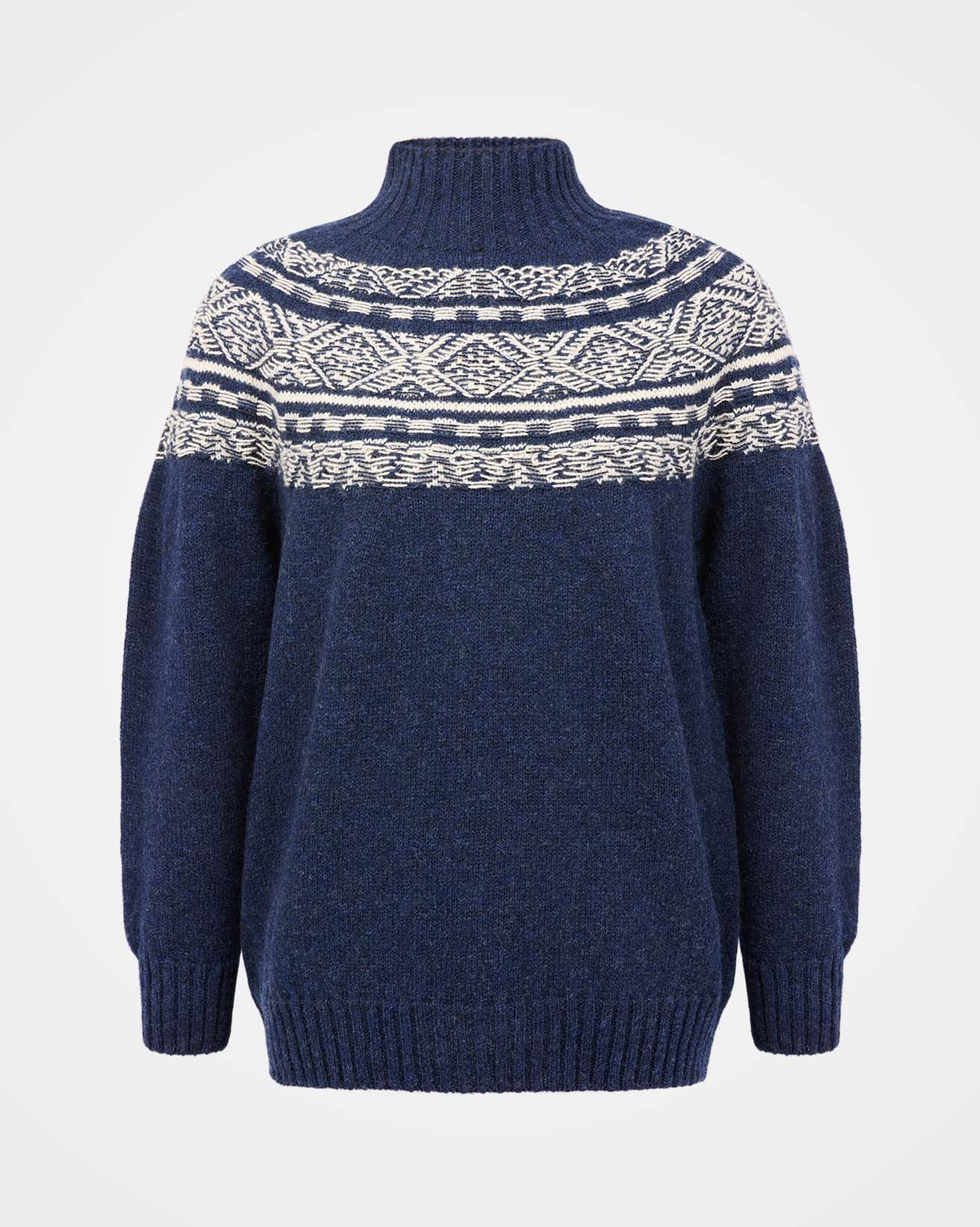 Celtic & Co Women’s Float Stitch Fair Isle Funnel Neck Jumper | Blue Ink