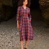 This versatile, button through midi dress features gathering at the neck, capped sleeves and side splits in the skirt. The waist tie can be adjusted from a loose, relaxed fit to a cinched in waist, depending on your preference. The fabric composition feels smooth to the touch, and the all natural material is light and crisp.