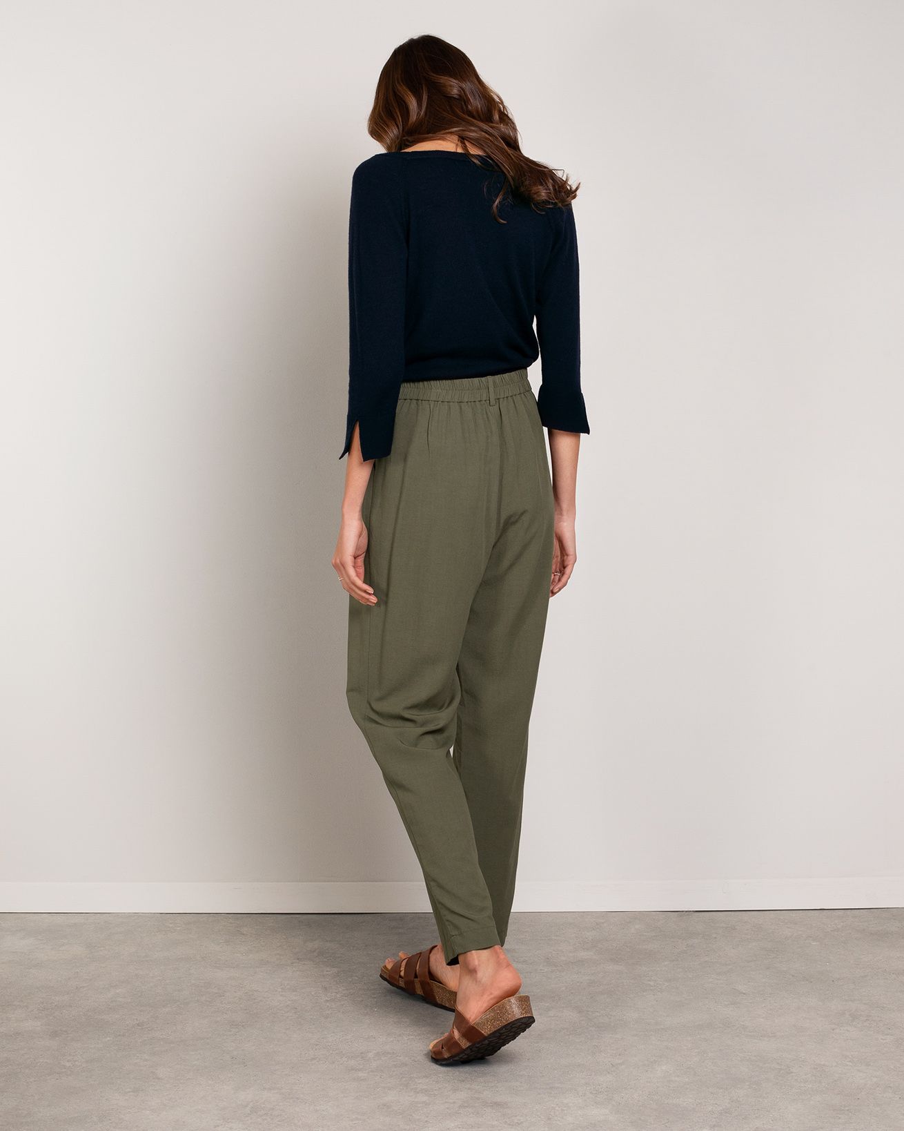 Crafted with a flat front waistband and an elasticated back for ease, these trousers feature a button and fly fastening along with pleat front detail, offering a casual yet polished silhouette.