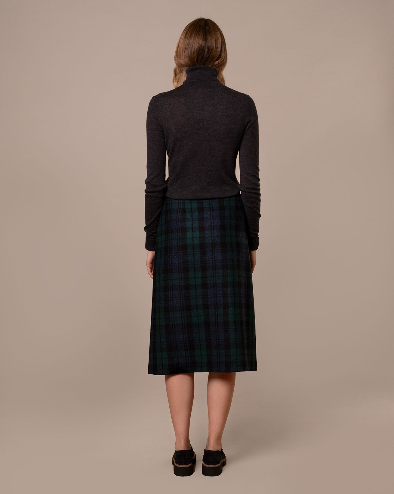 Our best-loved kilt but in a trending midi length to fall around mid calf. The longer cut makes this the ideal foundation for building a modern winter look with hints of the traditional. Expertly crafted for Celtic & Co. by one ofthe last remaining kilt manufacturers in Scotland, this fully lined kilt is made in pure wool with a wrapped design and twin leather straps for an adjustable fit at the waist.