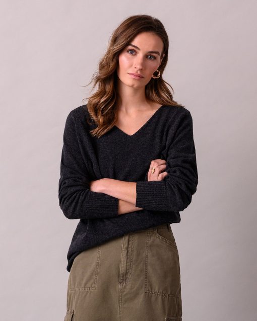 Cut to a slouchy shape, our core Geelong jumper style has been updated with a clean v-neckline for more versatility and wearability throughout the seasons. Featuring ribbed cuffs and our signature cast-off rolled hem. With a loose fit this is perfect for layering over shirts, wear this classic jumper at home, to work, or out and about on the weekend.